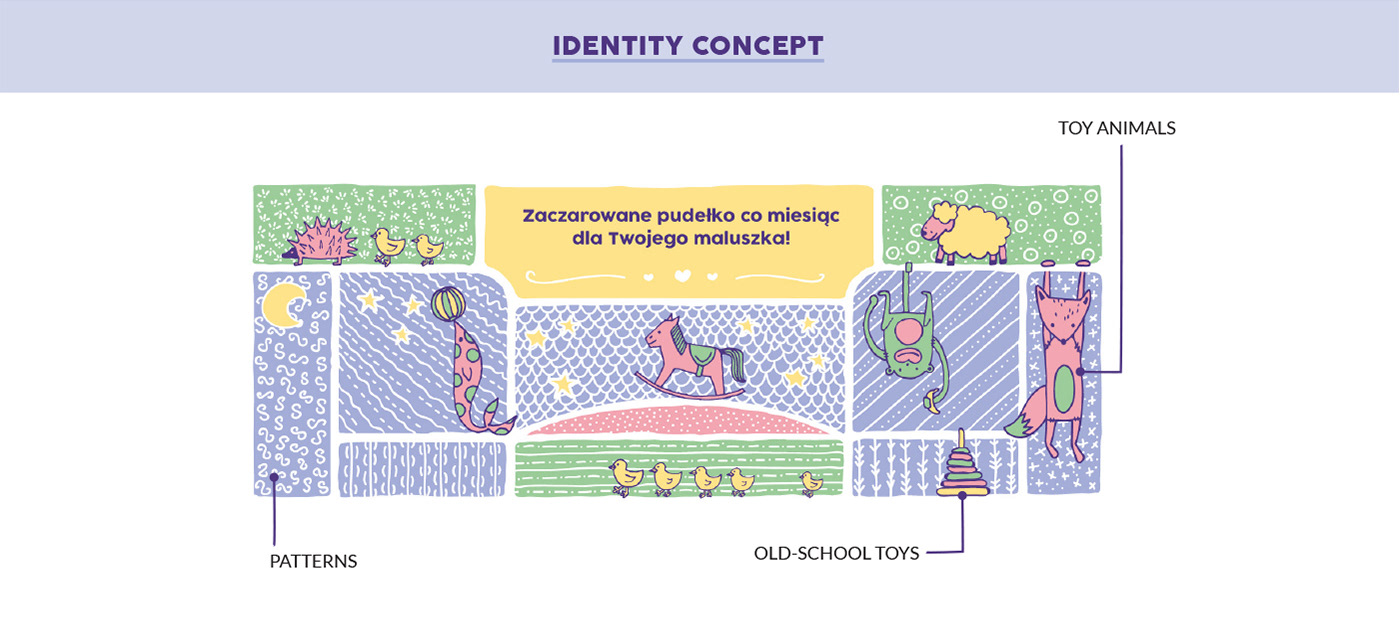 Brand identity for a company that makes subscription boxes for children from 1 to 3 years old.