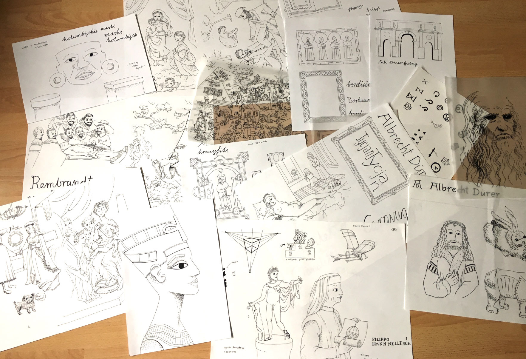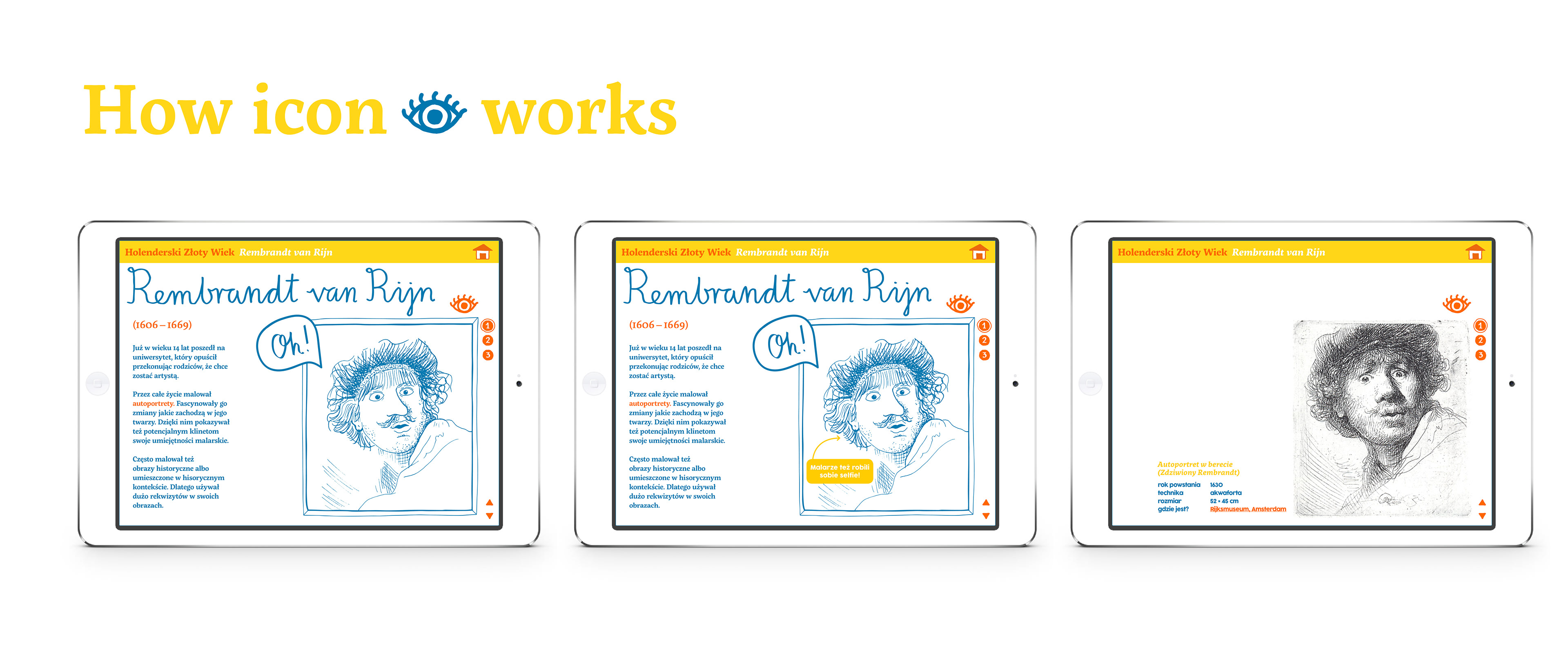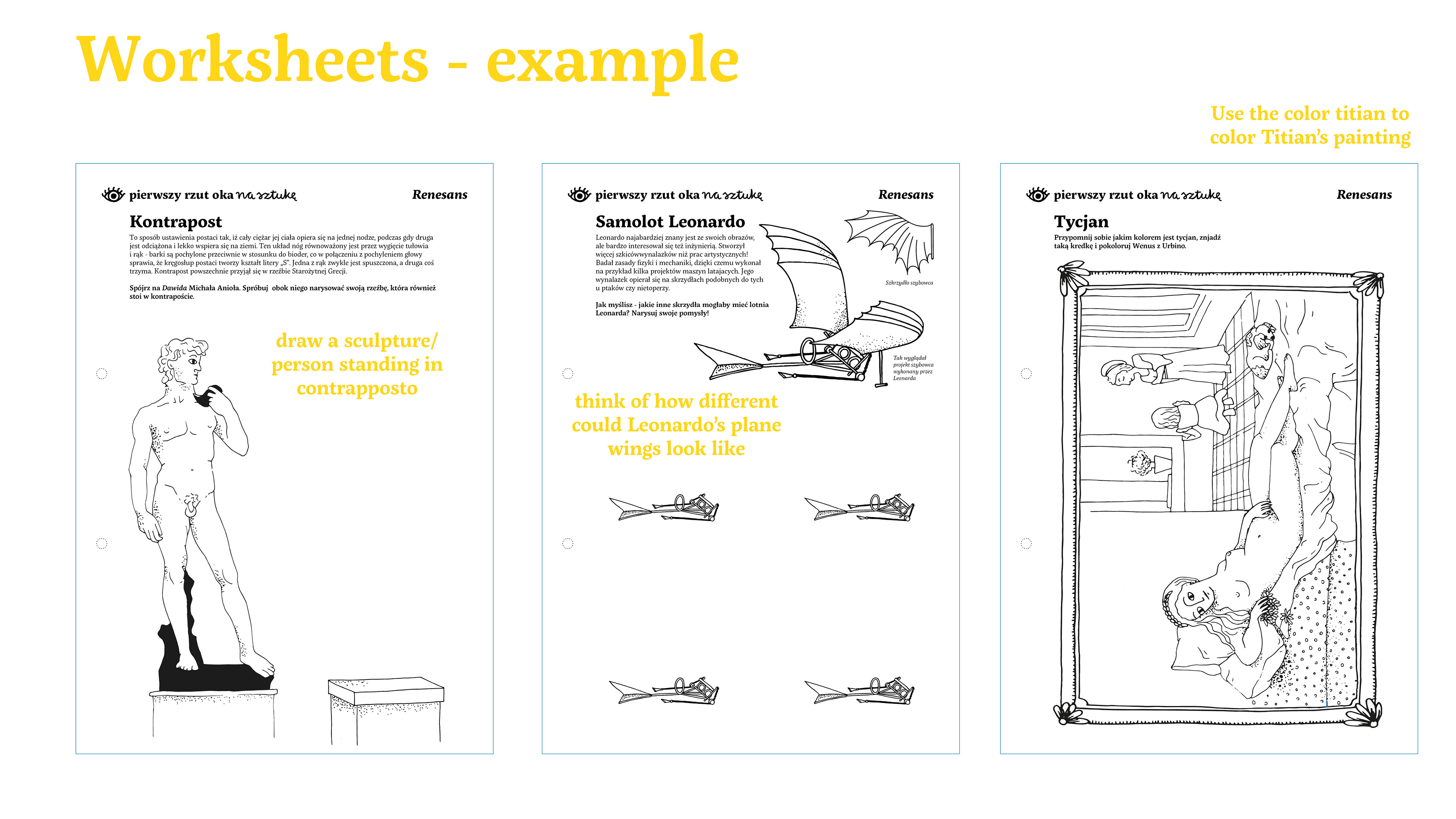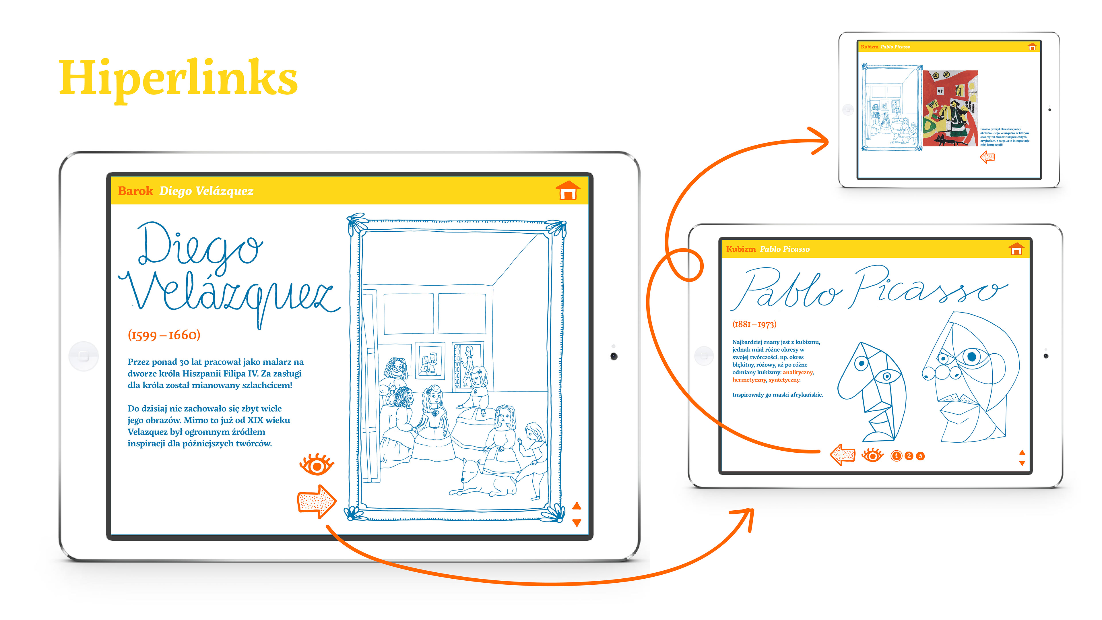 It's an app that includes print-at-home activity sheets, colouring book and a set of posters. The idea behind the app is very simple - a timeline, 3-8 artists per art period and a lot of pieces of art and connections between them. This last part is the most interesting to show, because it creates a lot of options to discover non-obvious connections between pieces of art.