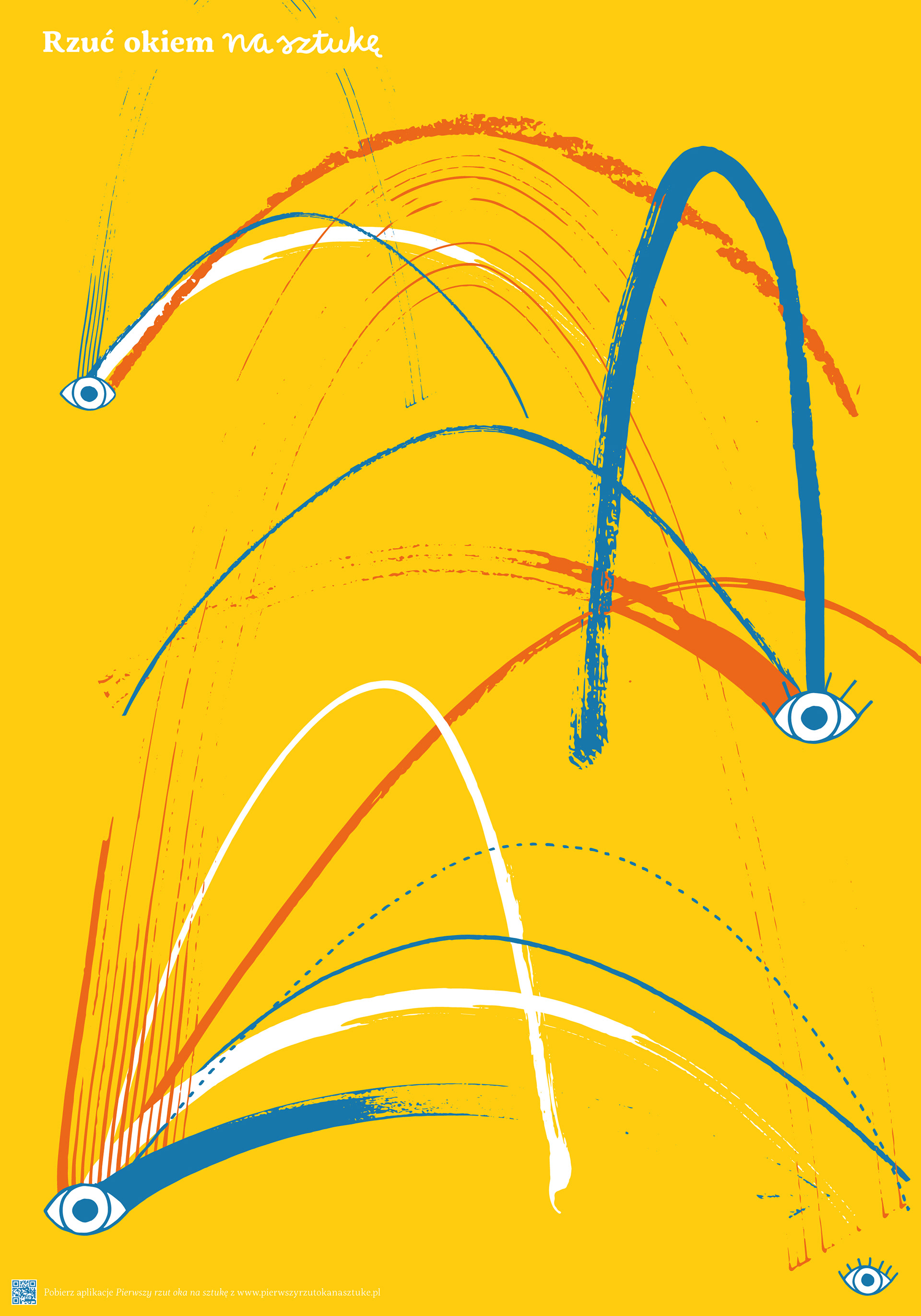 "Pierwszy rzut oka na sztukę" literally means "first throw of an eye at art" so that explains the joke here :)