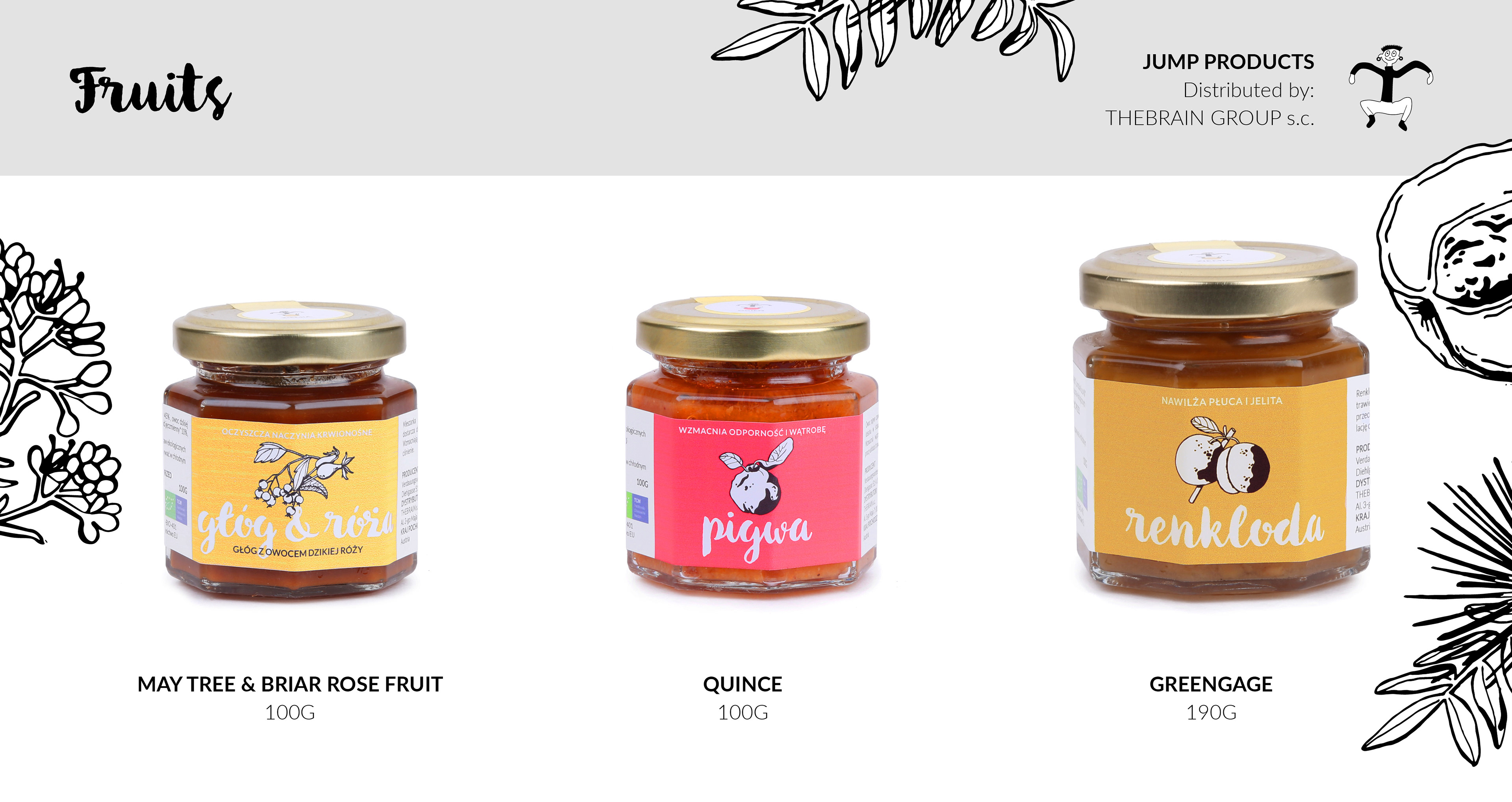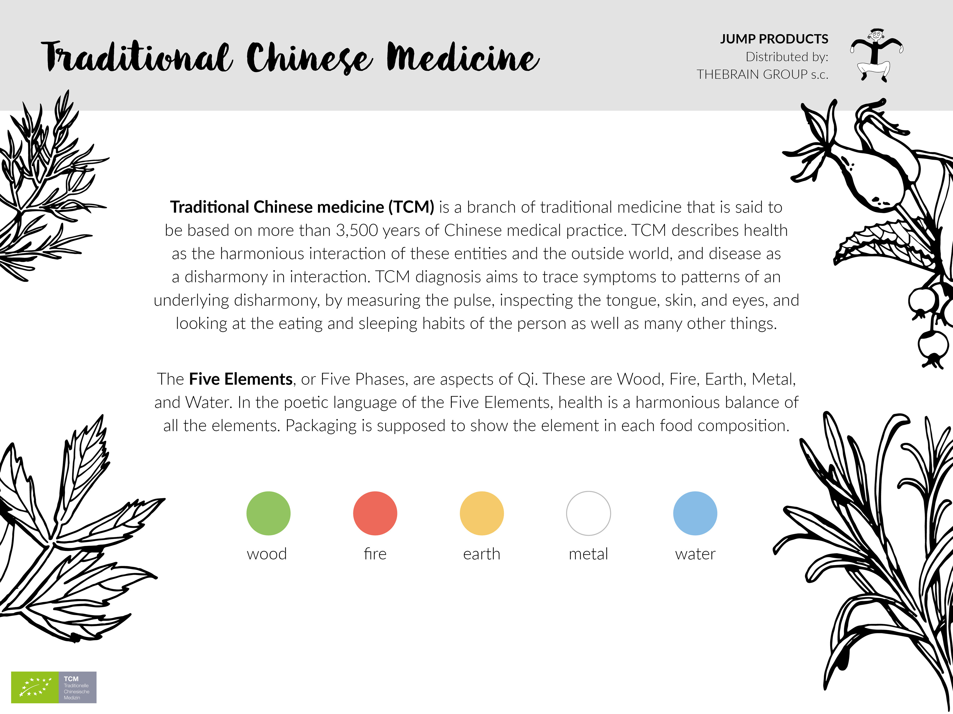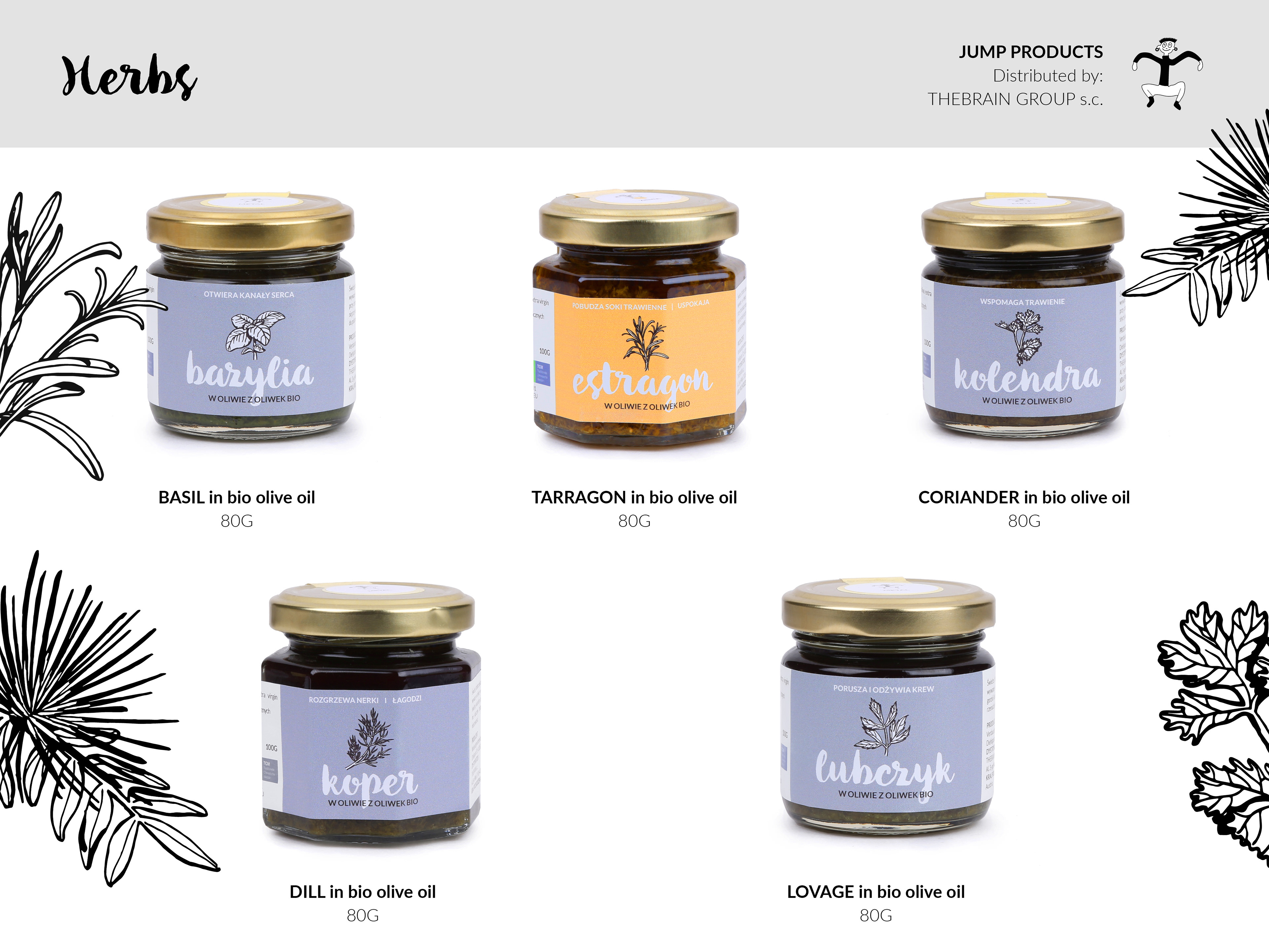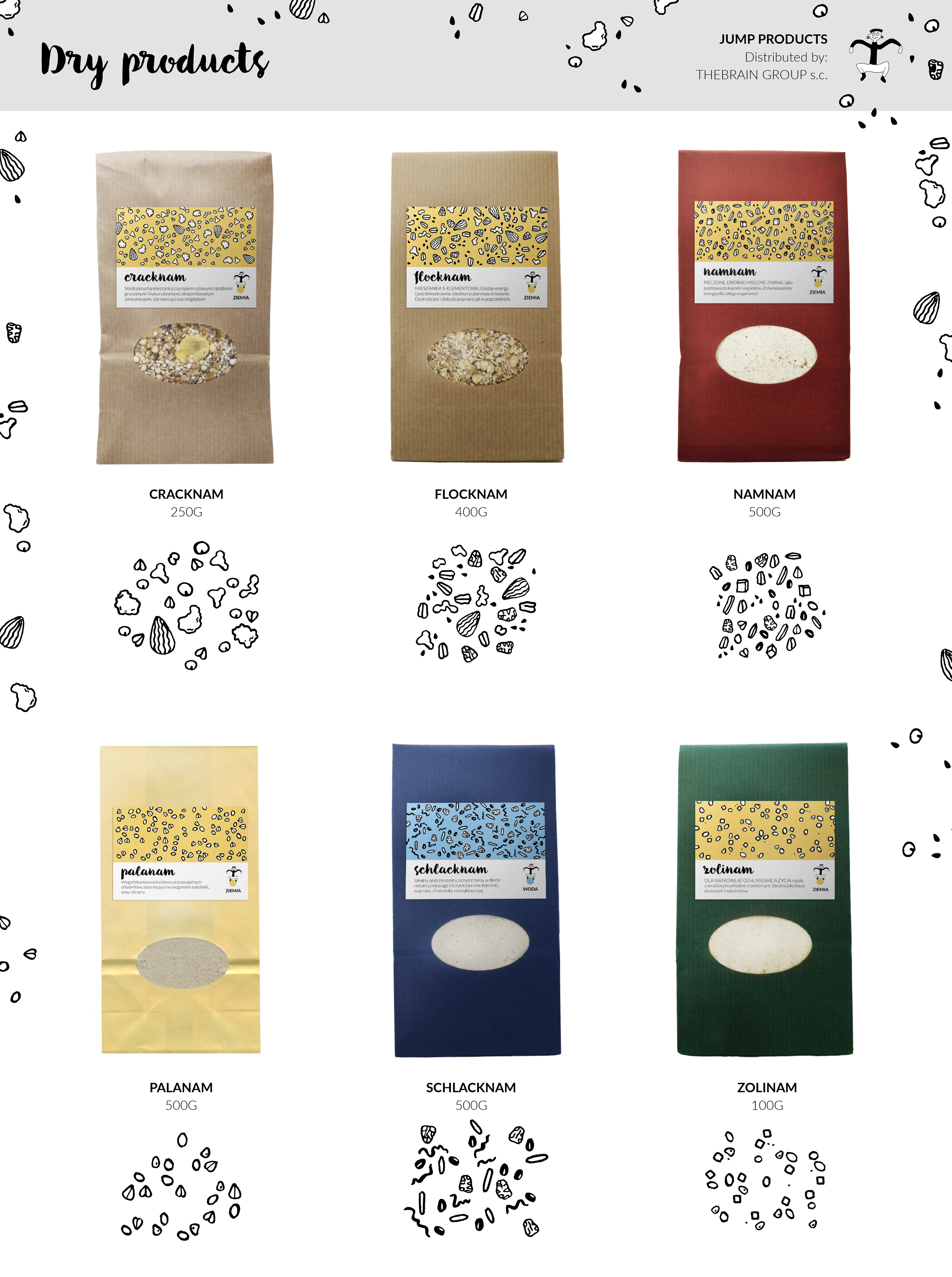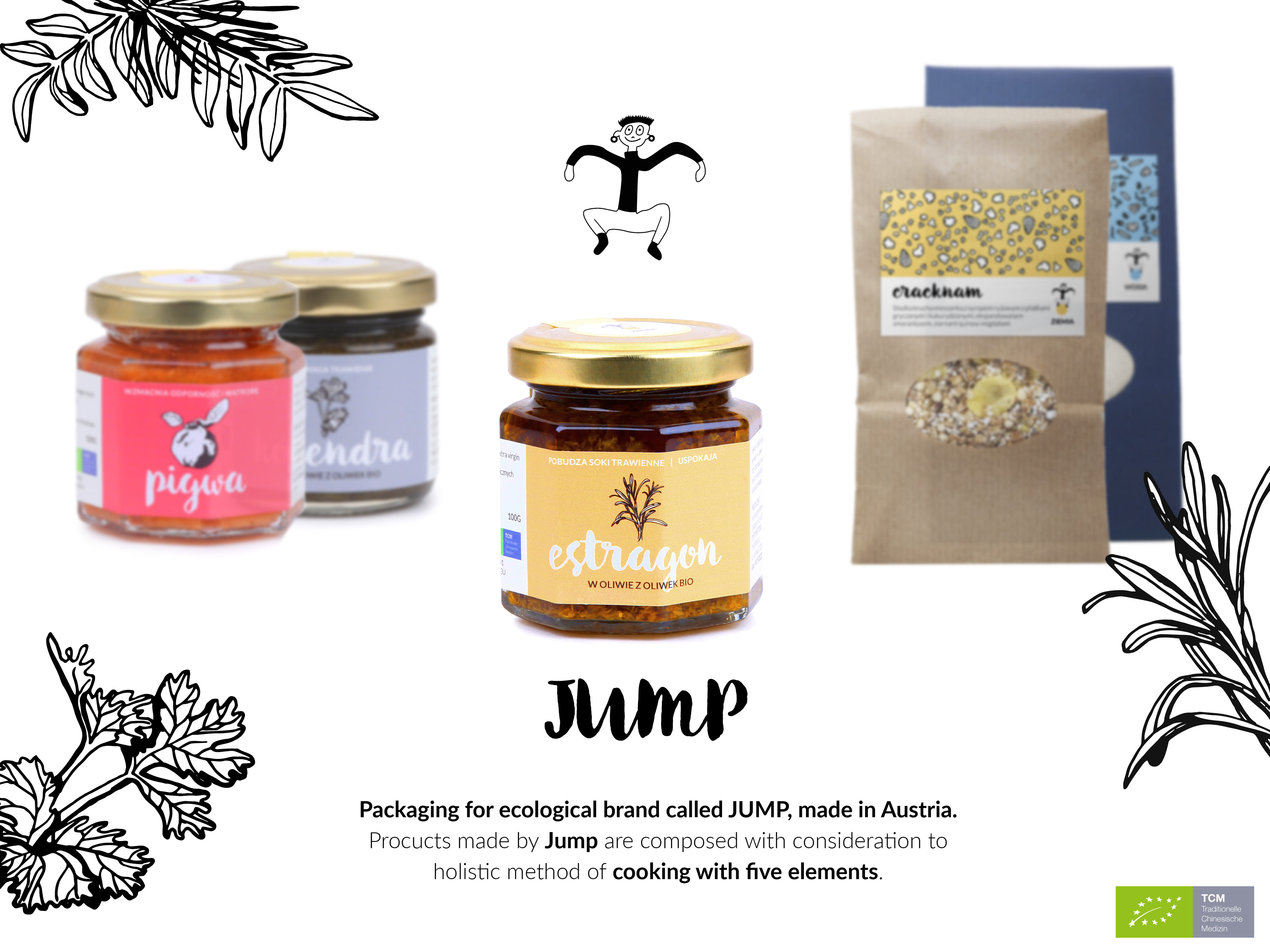 Packaging for ecological brand called JUMP, made in Austria. Procucts made by Jump are composed with consideration to holistic method of cooking with five elements.