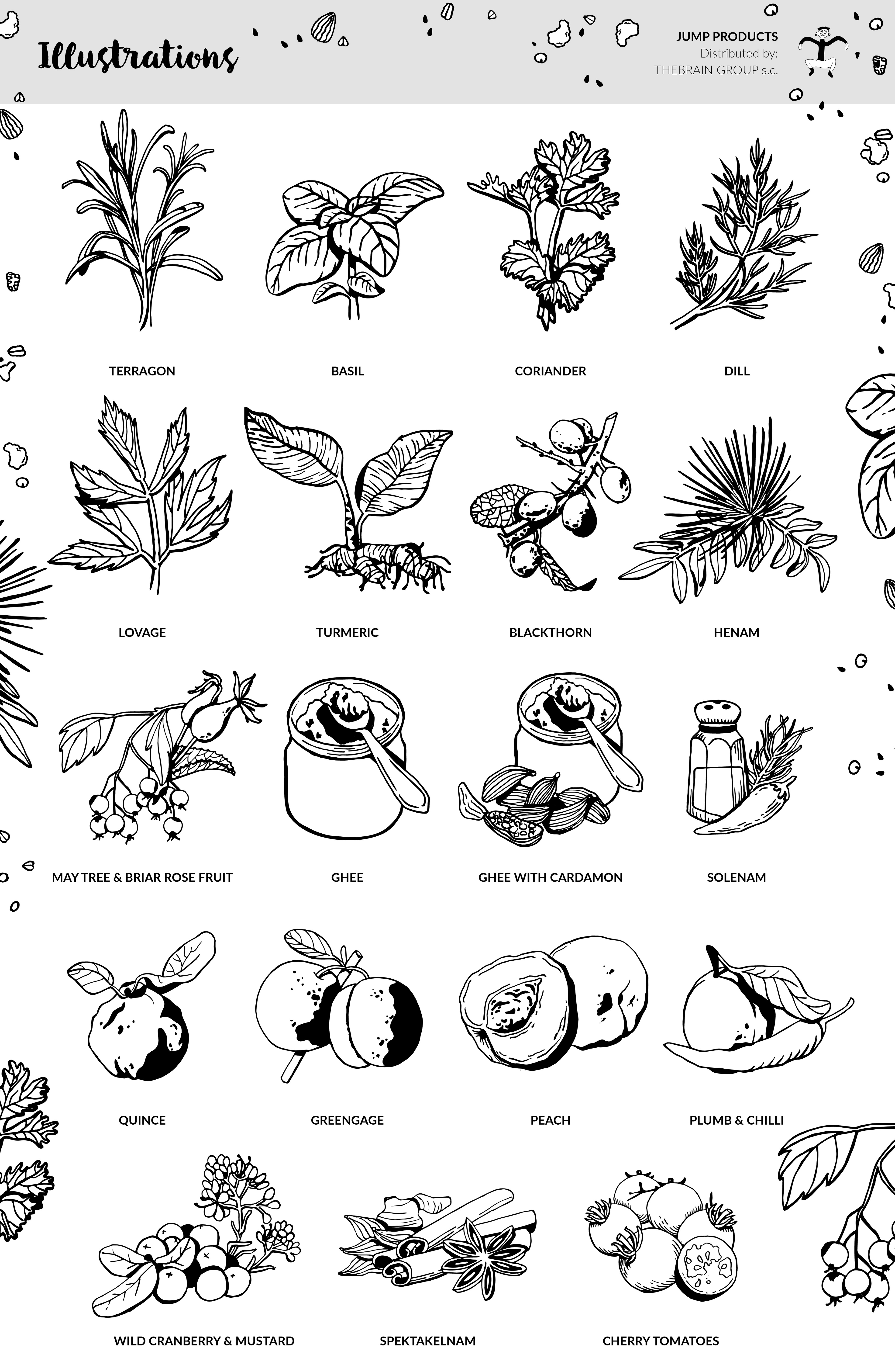 Each pattern for dry products is composed of small illustrations representing all ingredients. You can see the full list below: