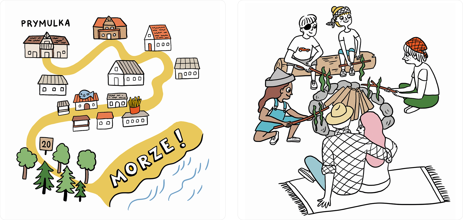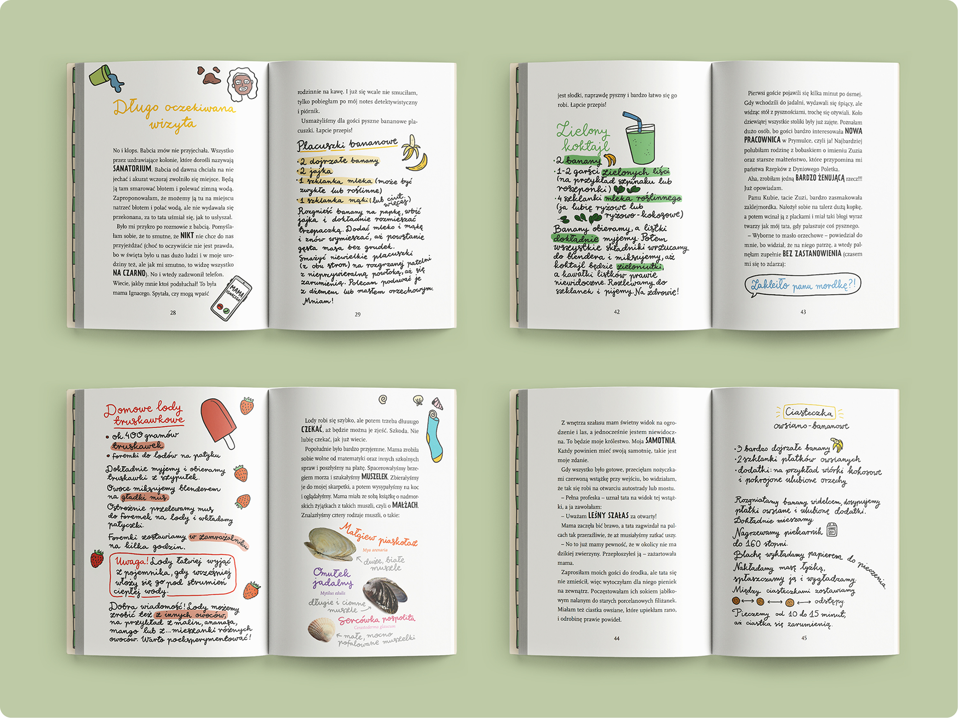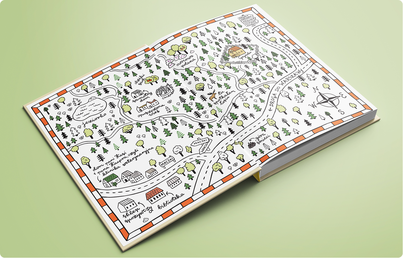 The book takes the form of Gaja's diary, which is why the illustrations are very simple. The colour palette is limited and consistent (just as a collection of crayons or markers would be) and much of the text is written by hand to emphasise the diary style. From a technical point of view, the book was printed without bleed for practical and budgetary reasons, so I had to keep this in mind when designing the layout and creating illustrations.