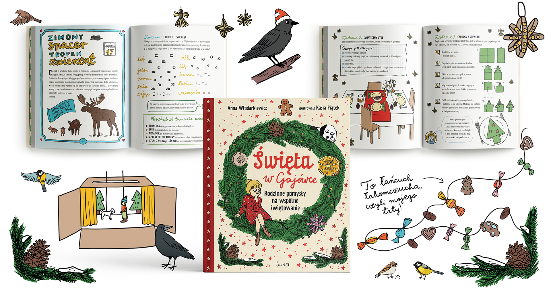 The book series is so popular in Poland, that it has a Christmas edition as well! So, so far, there have been five books and one special Christmas edition. The typestting was much more complex and included many DIY tasks, facts, tasks for each day of advent. Each day had illustrated items needed to create each object.