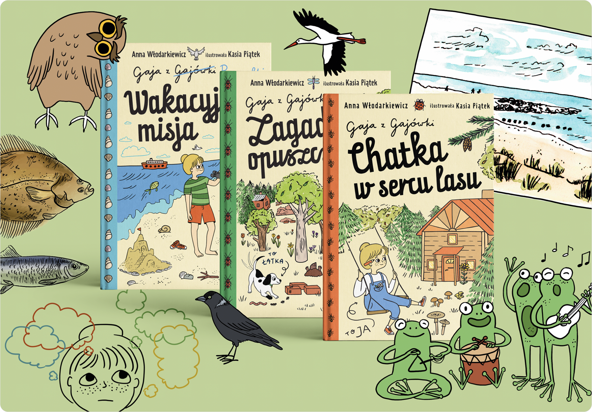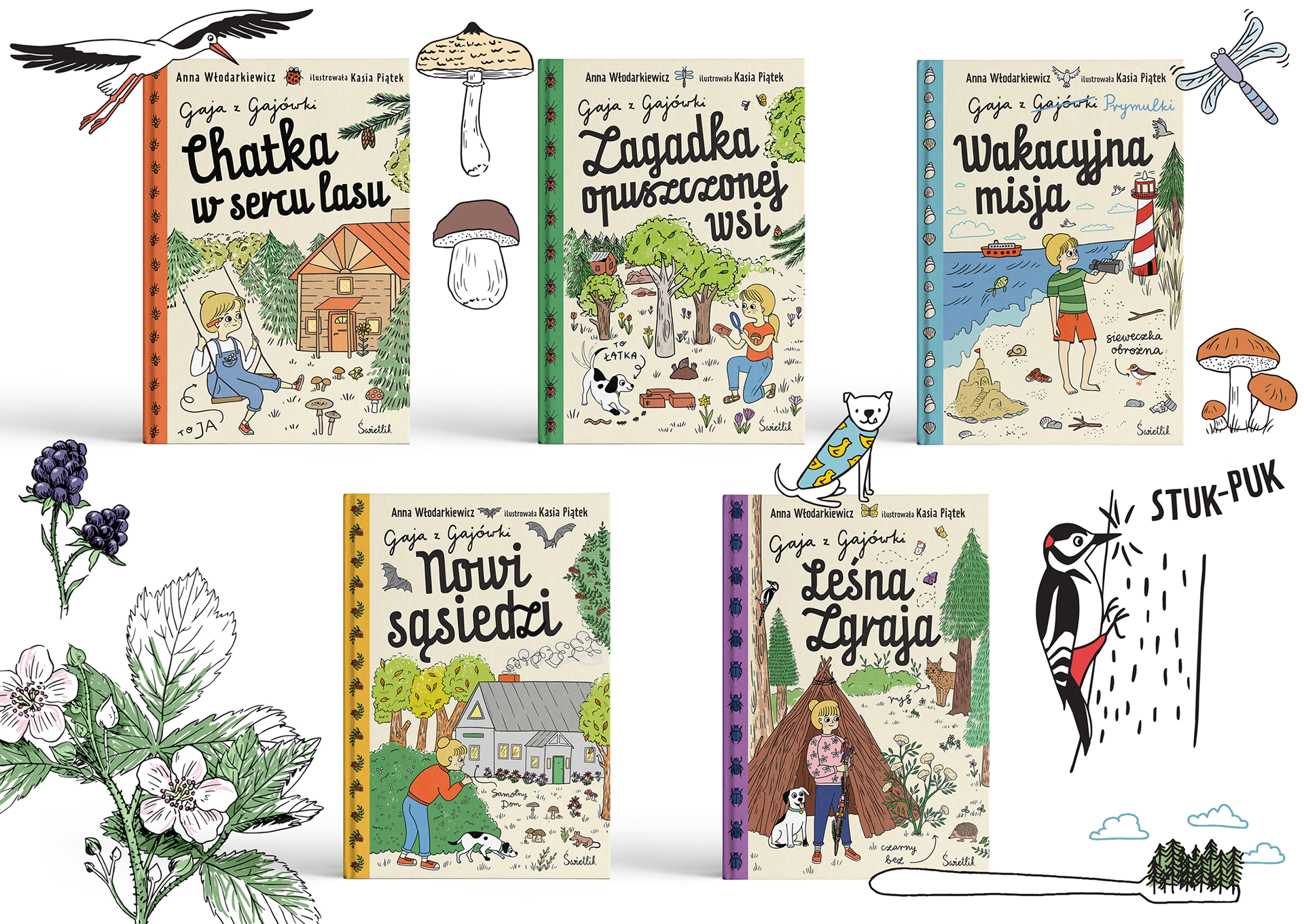 This is a book series about a schoolgirl named Gaja who lives in a forest. She is being homeschooled by her mother, a "forest witch", and her father, a woodsman. The series is filled with funny stories from the forest, interesting facts about plants and animals, and even some healthy recipes.
