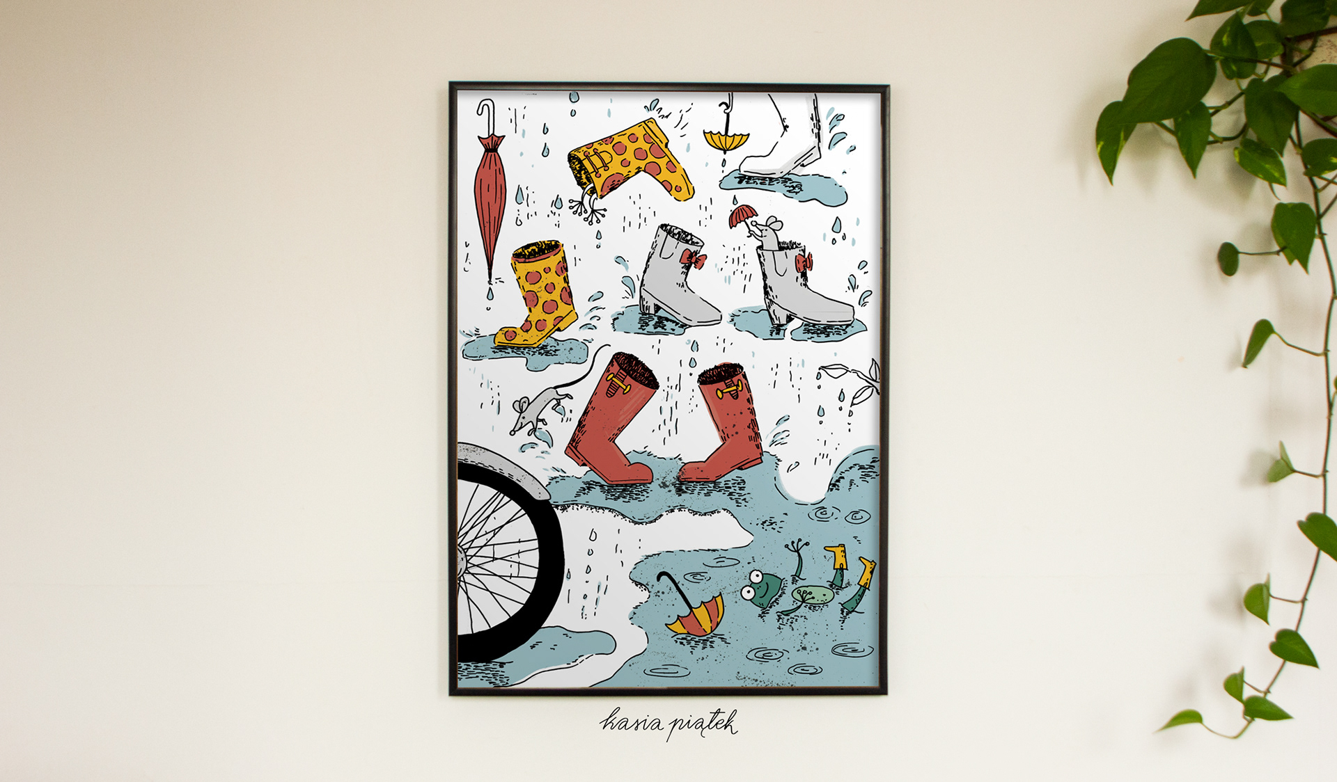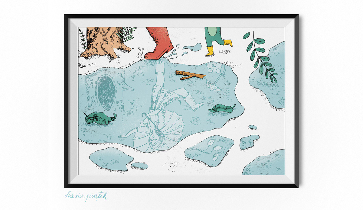 Personal project inspired by long walks with my dog in rain, wearing wellies of course.