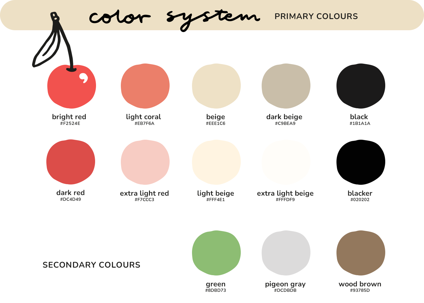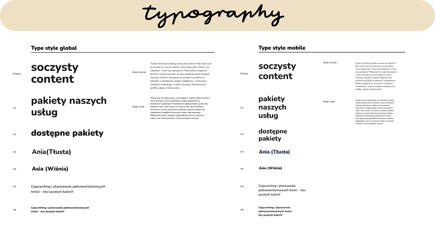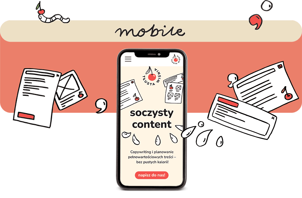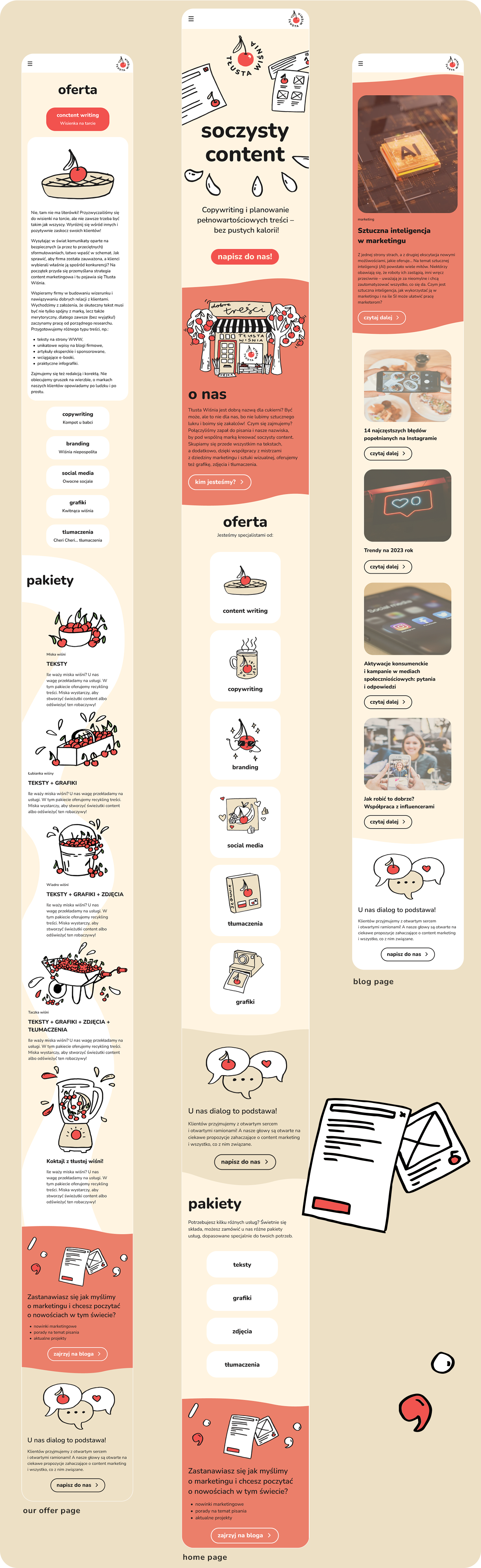 Tłusta wiśnia (polish for "fat cherry") is a brand of creatives focused on content creation and copywriting. The name is a joke that started with creator's last names. They wanted their branding to be cheerful and fun, but also conveying what is it that they actually do best – words.