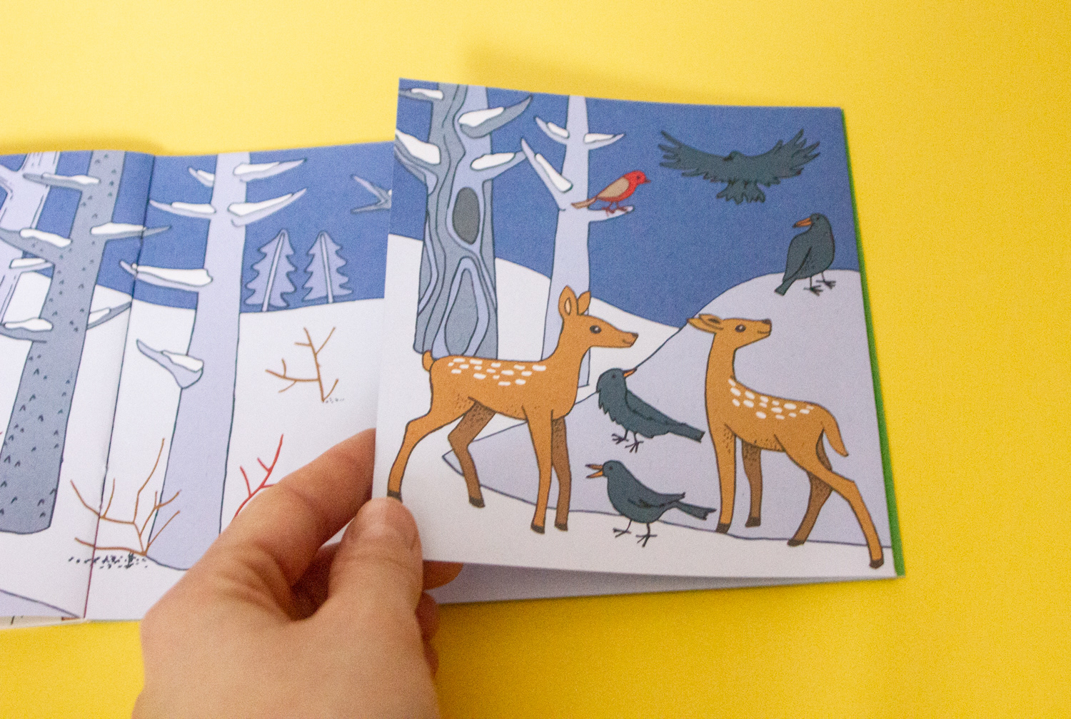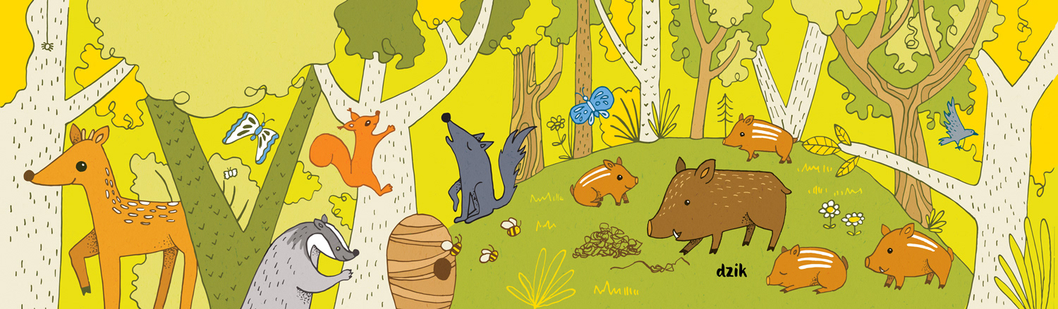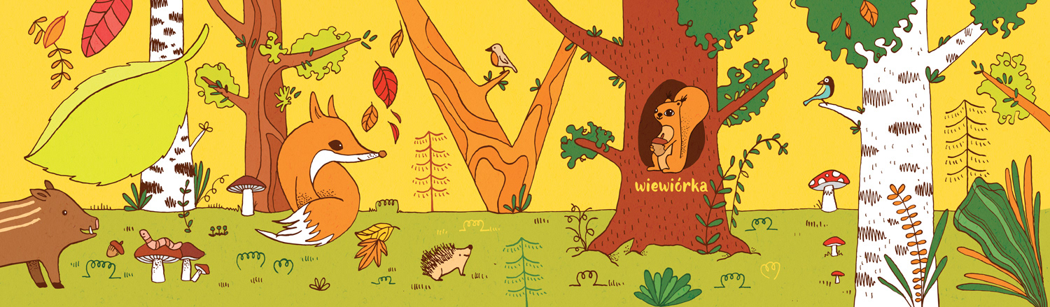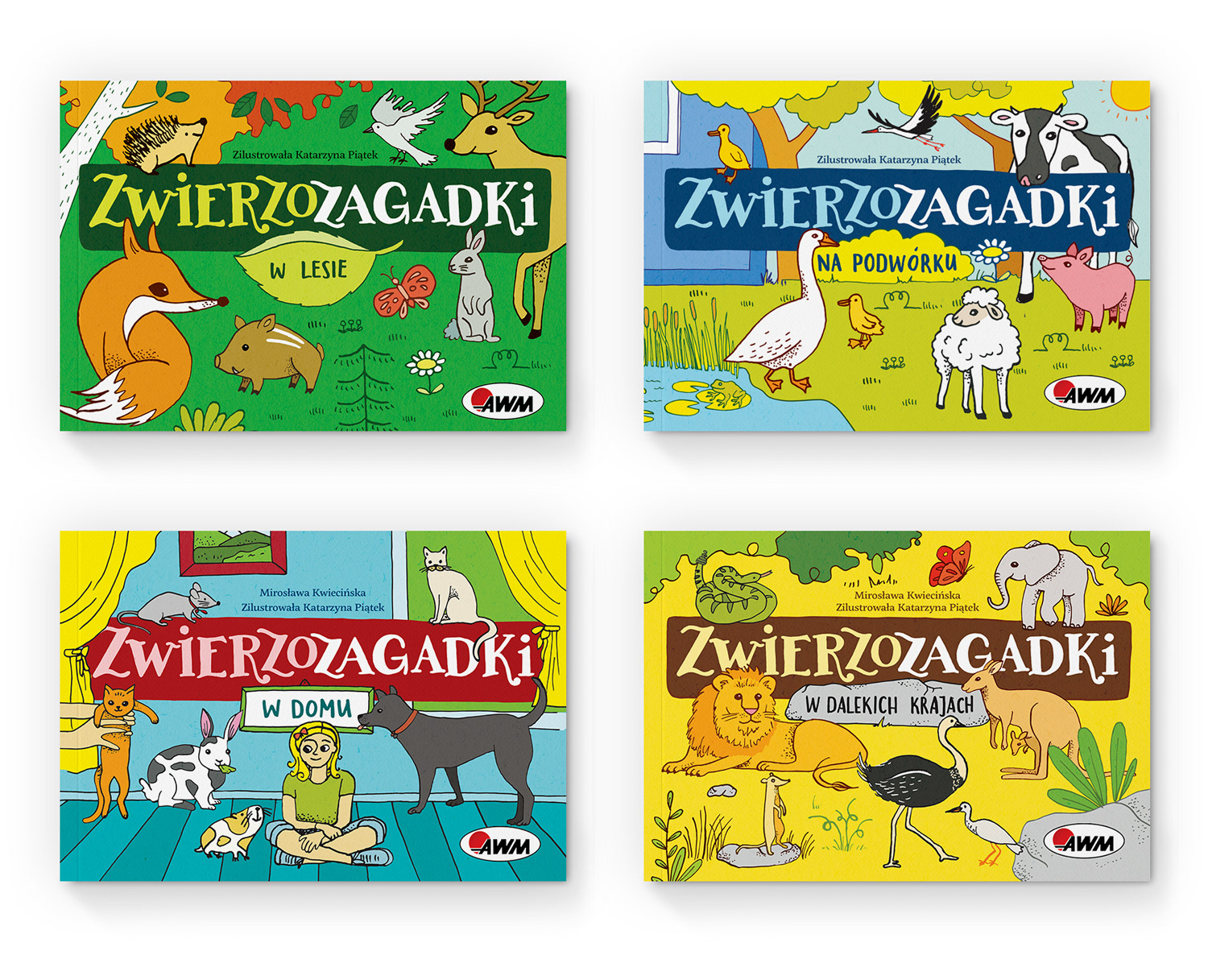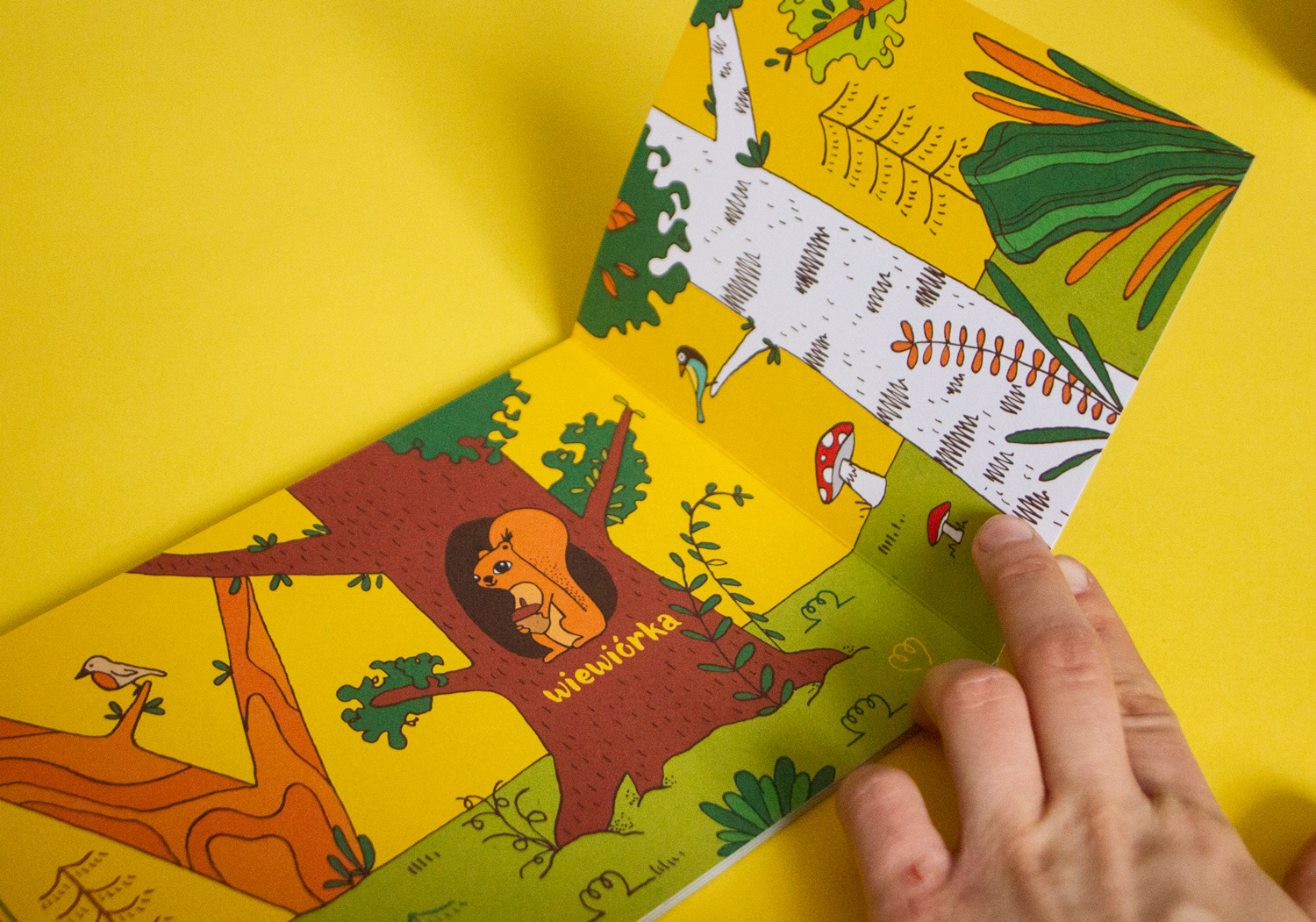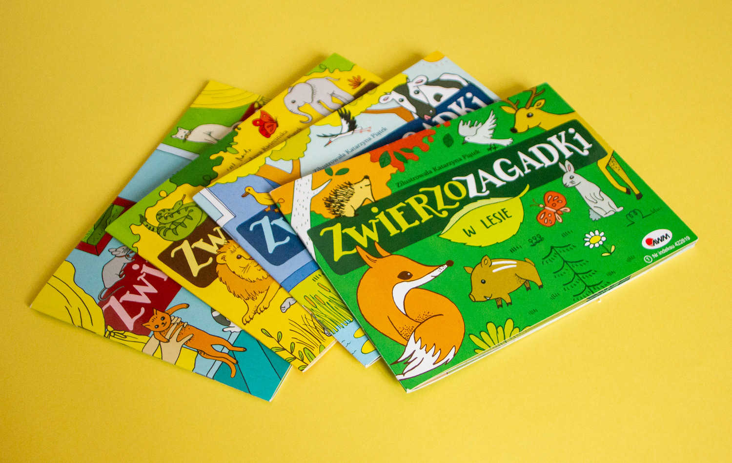 Illustrations with forest animals and little riddles about them. Book has flaps, so that the child can guess an animal and than uncover the flap to find out the correct answer.