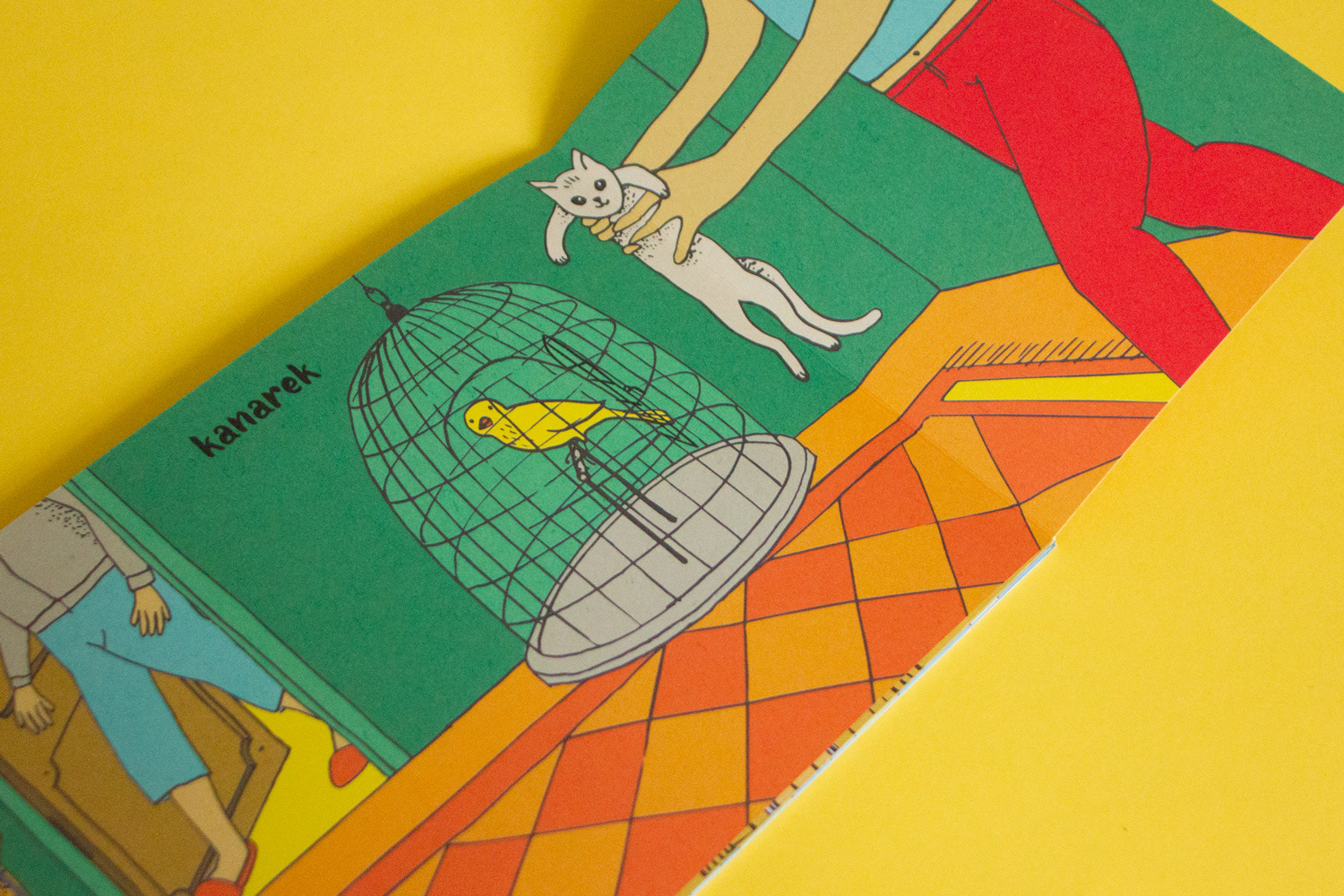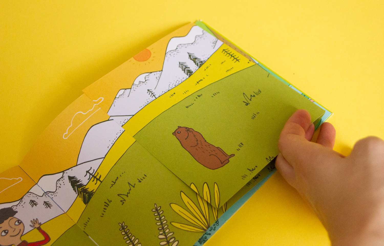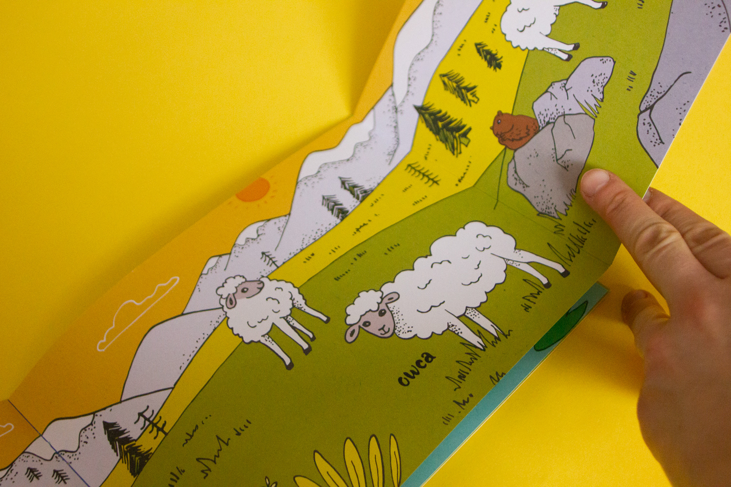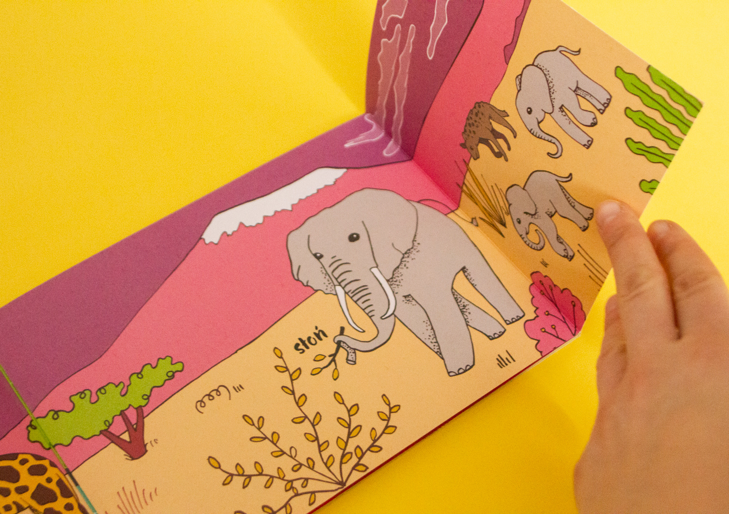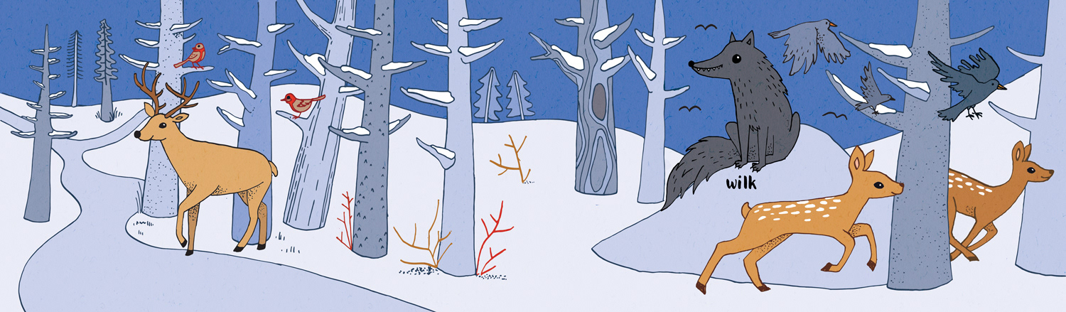 Illustrations with forest animals and little riddles about them. Book has flaps, so that the child can guess an animal and than uncover the flap to find out the correct answer.